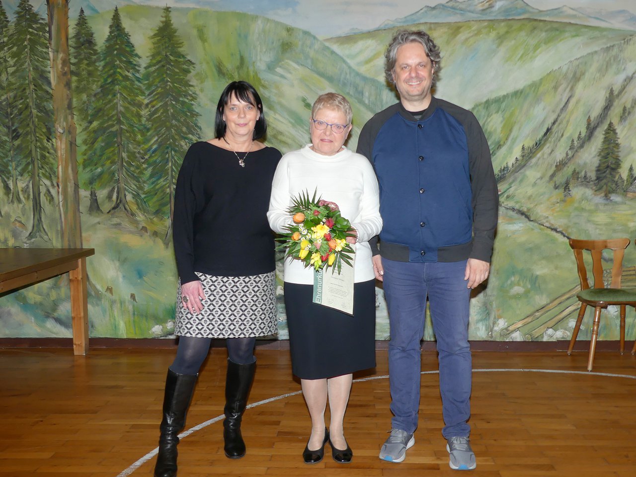 Der Verein, der demzufolge auch in diesem Jahr sein 40-jähriges Bestehen feiert, bedankte sich bei ihr mit Blumen und zollte der Vereinsgründerin Respekt für ihre Verdienste um den Naturheilverein. Christiane Wilhelm (Bildmitte) führte den Verein jahrelang als Vorsitzende. Zurzeit betreut sie das vereinseigene Berghaus Isidor in Gramais. Mit im Bild die aktuellen Vorsitzenden des Naturheilvereins Claudia Schienle und Matthias Ressler. Foto: Werner Ackel