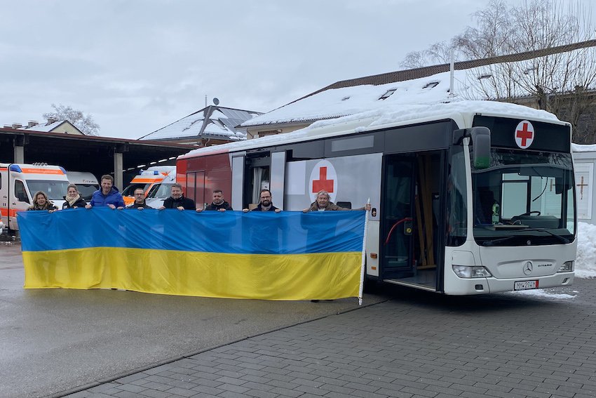 Bevor der Bus in die Ukraine aufbricht, wurde er mit medizinischem Material aus dem ehemaligen Impfzentrum Memmingen gefüllt, darunter OP-Mundschutz, Kanülen oder Spritzen. Das Bayerische Gesundheitsministerium hatte für die Materialspende vorab eine Freigabe erteilt. Der Bus wird nun von der ukrainischen Gemeinde Bamberg zunächst nach Lwiw (Lemberg) geschickt und von dort in Gebiete entsandt, wo er besonders gebraucht wird.