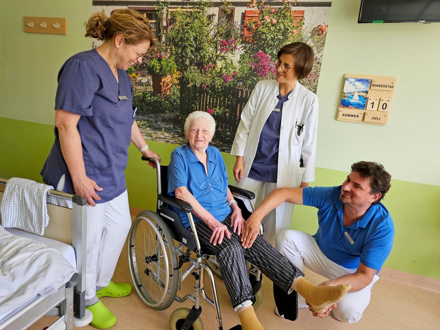 Auch Stürze mit Knochenbrüchen sind häufige Ursachen für stationäre Behandlungen bei betagten Patienten. „Hier wird besonders darauf geachtet, dass rasch operiert wird und der Patient nach der Operation sofort wieder voll belasten kann“, erklärt Oberärztin Bikker. Dabei arbeitet die Internistische Abteilung eng mit der Unfallchirurgie unter Chefarzt Prof. Dr. Christoph Dehner zusammen. „Denn unser erklärtes Ziel ist es, den betagten Patienten nach dem Krankenhausaufenthalt wieder ein eigenständiges Leben im gewohnten Umfeld zu ermöglichen“, so die Geriaterinnen.