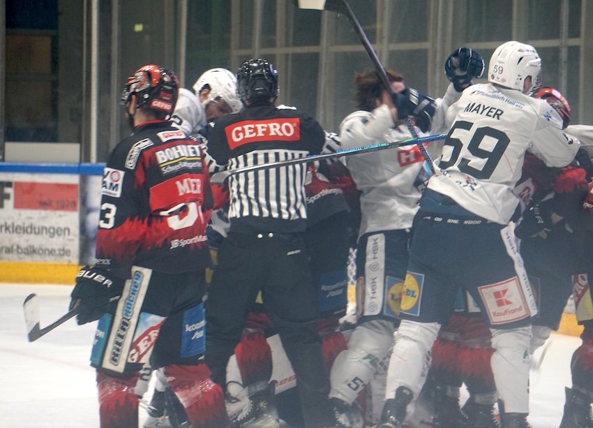 Auch heute abend dürfte es wieder ziemlich emotional hergehen - so wie hier in Spiel 2 am Sonntag in Memmingen. Foto: Michael Geiger
