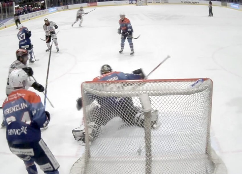 Felix Brassard (links in weiß) traf in dieser Szene zum 1:1. Bildschirmfoto: sprade.tv/Wolfgang Radeck