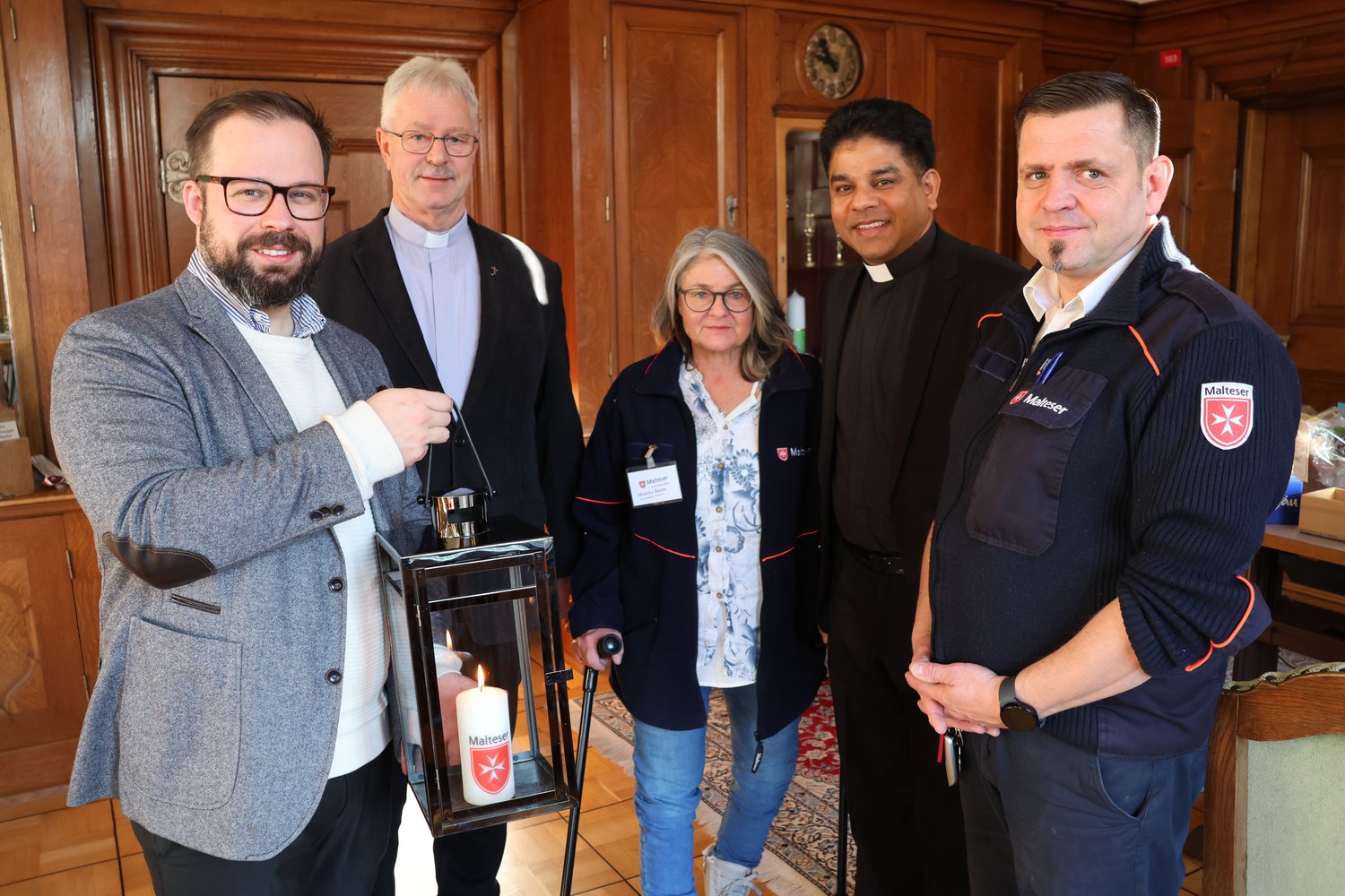 „Gerade in diesen unfriedlichen Zeiten ist es wichtig, den Fokus auf Frieden und Hoffnung zu richten“, betonte Oberbürgermeister Jan Rothenbacher. Begleitet wurde die Übergabe von Stadtpfarrer Pater Joshy Palakunnel, Diakon i.R. Roland Pressl und der ehrenamtlichen Mitarbeiterin der Malteser Monika Baum.