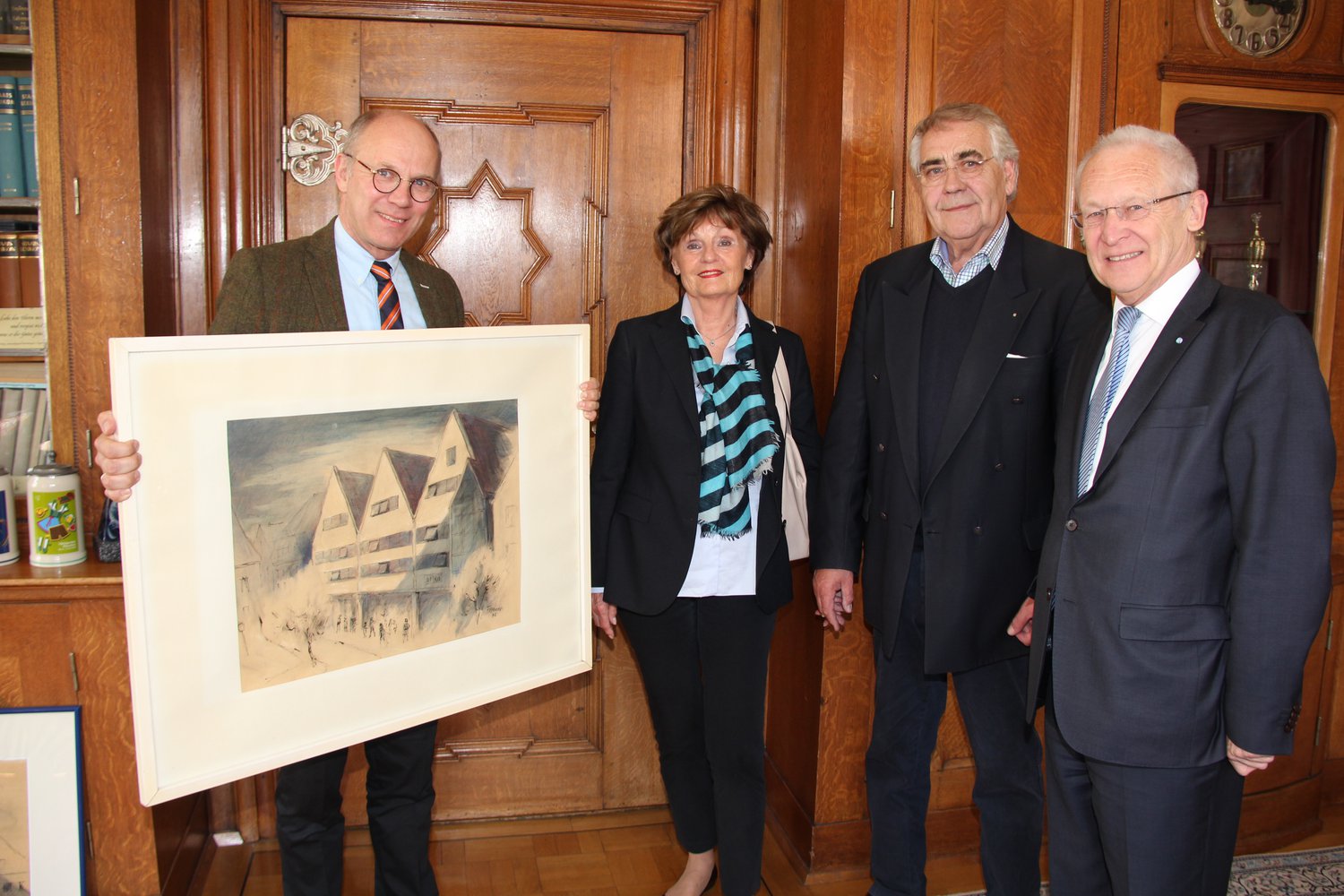 kolorierte Zeichnungen überreichten Karin und Paul Wrobel aus Singen an