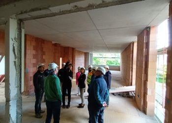 Memmingen (sg). Bei einem zweiten Baustellenrundgang seit Baubeginn im Herbst 2022 präsentierte Architekt Markus Merz den baulichen Fortschritt der letzten Monate. Deutlich erkennbar sind die fertigen Rohbauarbeiten an Mensa und Erweiterungsbau. Der Einbau der Fenster, Installationsarbeiten und die Arbeiten an den Dachflächen dauern noch an, bevor bald auch mit dem Innenausbau begonnen werden kann.