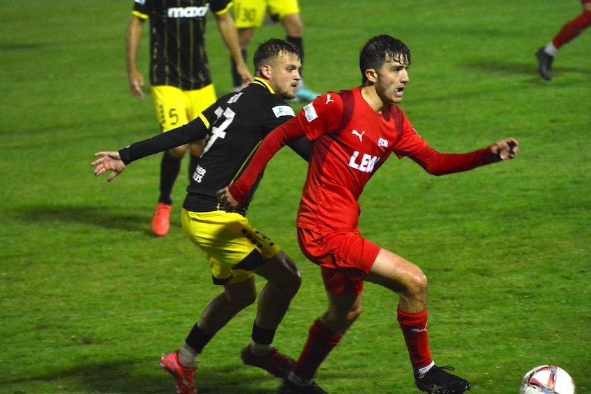 Bei nasskaltem Wetter fanden nur rund 500 Fans den Weg in die Arena, die sahen einen durchaus flotten Beginn beider Teams. Die erste kleine Möglichkeit hatten die Gäste mit einem Versuch aus über 60 Metern,, weil FCM-Keeper Dominik Dewein ziemlich weit vor seinem Kasten war - aber der Ball ging dann doch weit vorbei (6.). In der Folge entwickelte sich eine ausgeglichenes Spiel, allerdings ohne Chancen. Bis zur 17. Minute, als Nico Nollenberger nach einem Solo die freien Mitspieler nicht sah, sein Versuch war zu schwach.