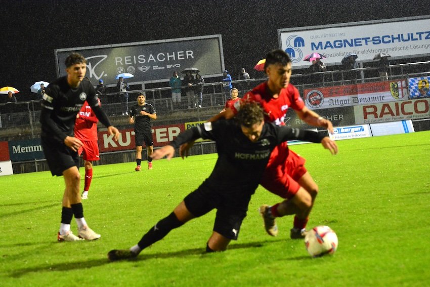 Memmingen (rad). Der FC Memmingen ist in der Regionalliga nun schon seit sechs Spielen ungeschlagen. Bei strömenden Regen holten die Günes-Schützlinge gegen die spielstarke Zweitliga-Reserve der SpVgg Greuther Fürth ein verdientes 1:1 (0:1). Torhüter Dominik Dewein hielt dabei noch einen Elfmeter.