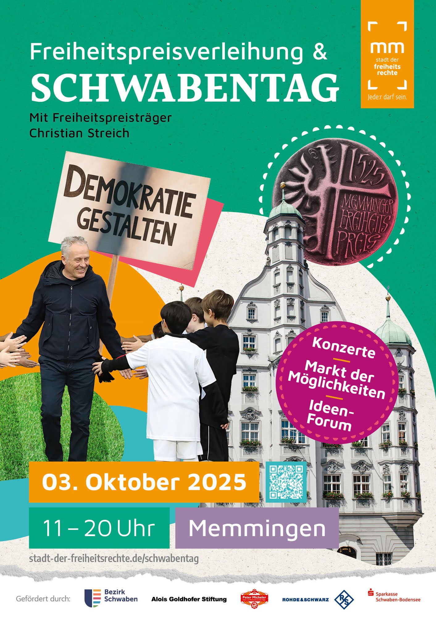 Der langjährige Fußballtrainer Christian Streich wird am Freitag, 3. Oktober, dem Tag der Deutschen Einheit, mit dem Memminger Freiheitspreis 1525 ausgezeichnet. Der Festakt in der Martinskirche wird ab 11 Uhr live auf dem städtischen Instagram-Kanal „stadtmemmingen“ und auf dem YouTube-Kanal der Stadt Memmingen übertragen.