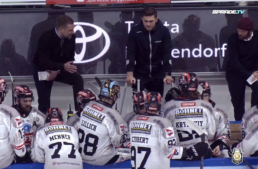 Trainer Daniel Huhn (links) und sein Team fanden diesmal nicht das richtige Mittel, um den DSC zu schlagen und die Serie für sich zu entscheiden. Bildschirmfoto: sprade.tv/Wolfgang Radeck