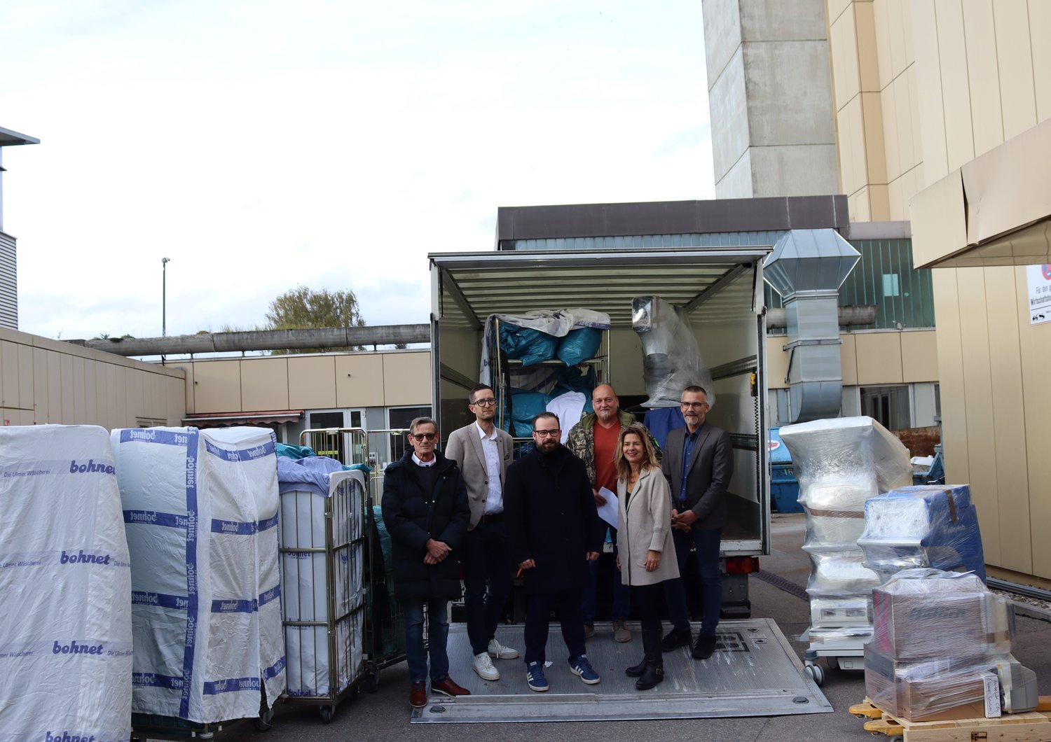 Das Klinikum Memmingen reagierte umgehend auf den Hilferuf und stellte medizinische Geräte sowie Arbeitskleidung zur Verfügung. Zu den Hilfsgütern zählen unter anderem ein OP-Mikroskop, Patientenmonitore und ein Beatmungsgerät.