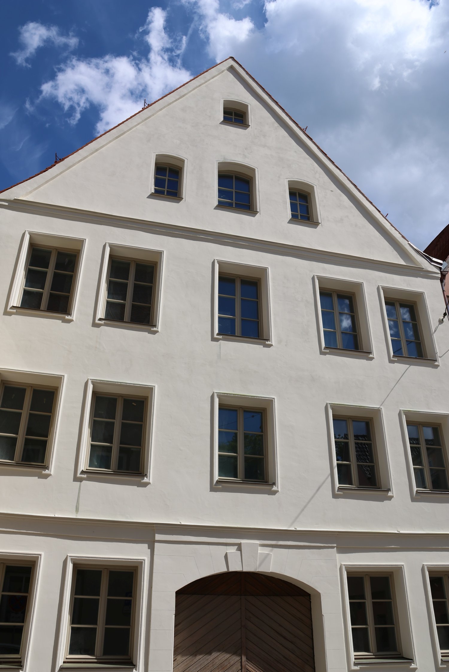 Ebenfalls ausgezeichnet wurde die gelungene Transformation des Doppelhauses in der Hinteren Gerbergasse 3 und 3 ½ durch zwei Familien aus Buxheim. Mit ihrer klaren und ruhigen Fassadengestaltung setzt die Sanierung nicht nur am Gebäude selbst Maßstäbe, sondern wirkt sich auch positiv auf den umliegenden Stadtraum aus. Die Straße gewinnt durch die Maßnahme deutlich an Struktur, Wertigkeit und Identität. Laut Jury trägt das Projekt wesentlich zur Aufwertung des öffentlichen Raums bei und verleiht ihm eine neue, qualitätvolle Prägung.