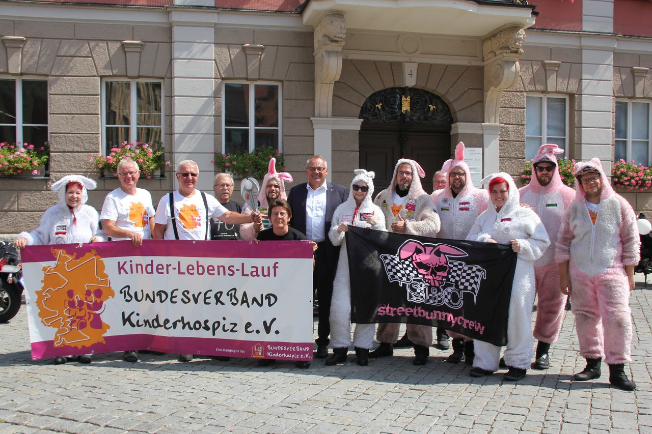 Die Teilnehmer des "Kinder-Lebens-Lauf" durch Deutschland machten in Memmingen Station. Foto: Julia Mayer/Pressestelle Stadt Memmingen