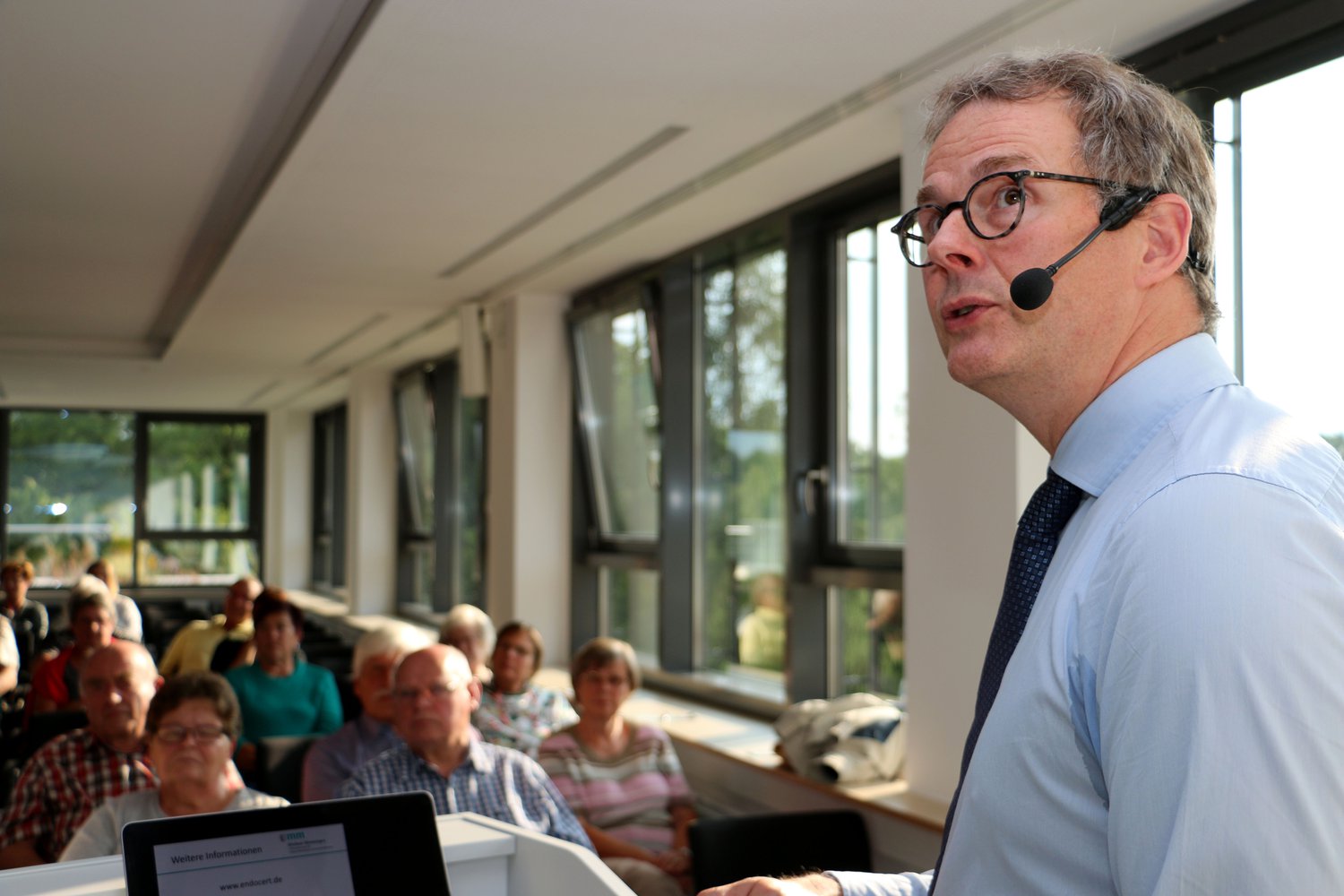 Oberarzt Dr. Dirk Wernerus klärte vor rund 60 Interessierten über den künstlichen Gelenkersatz an Hüfte und Knie auf. Foto: Häfele/Pressestelle Klinikum Memmingen