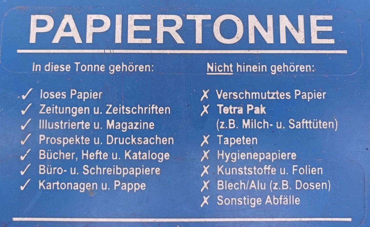 Bücher, Tageszeitungen, Druck- und Kopierpapier, Versandkartons oder Eierschachteln sind bekannte Beispiele für die richtige Entsorgung in der Altpapiertonne. Doch wenn das Papier oder die Kartons beschmutzt oder nass sind, gehören diese in die Restmülltonne, denn dann sind diese nicht zum Recycling zu gebrauchen. Zeitungen mit Ölflecken oder Wandfarbe oder zum Beispiel auch Pizzakartons mit Essensresten oder vielen Fettflecken müssen ebenfalls über die Restmülltonne entsorgt werden. Saubere Pizzakartons ohne Pizzareste können ins Altpapier.