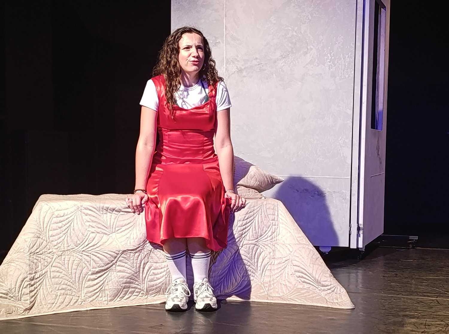 Memmingen (as). Mit großem Beifall wurde die 23-jährige Schauspielerin Lotte Gosch für ihr Debüt am Jungen Landestheater Schwaben gefeiert. In Thomas Arzts moderner Adaption von Arthur Schnitzlers "Fräulein Else" überzeugte sie mit einer intensiven Darstellung der zerrissenen 15-Jährigen, die zwischen jugendlicher Freiheit, familiärer Verantwortung, sexueller Bedrängnis und eigenen Sehnsüchten hin- und hergerissen ist.