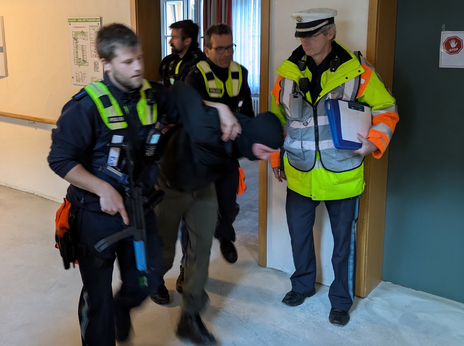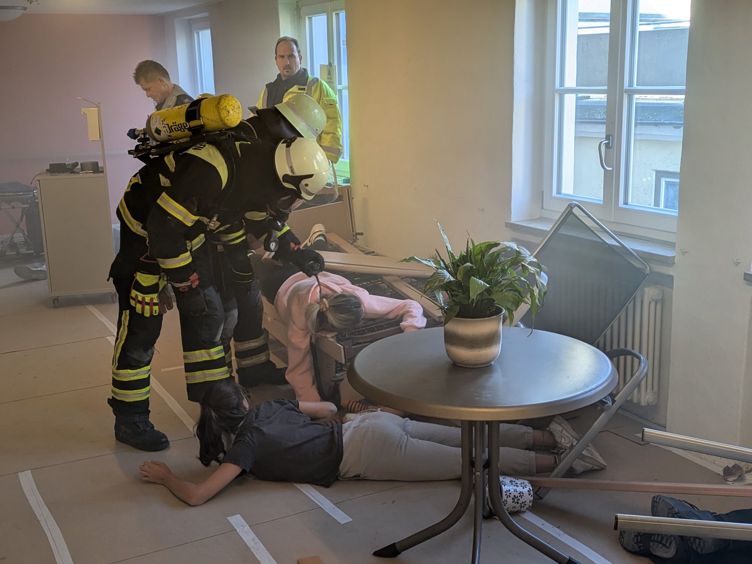 Für die Übung wurden leerstehende Räumlichkeiten des Heims im Zentrum der Stadt genutzt, die gerade renoviert werden. Die Bewohner des Heims waren informiert und wurden nicht in die Übung mit einbezogen.