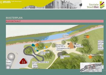 Theresa Porsch, Landschaftsarchitektin beim mit der Vorplanung betrauten Büro geiger & waltner aus Kempten, stellte den Masterplan des Sport- und Freizeitgeländes am Haienbach im Memminger Osten vor. Die vielfältigen Anregungen der Bürger aller Altersstufen aus dem Beteiligungsprozess im Rahmen der „Vorbereitenden Untersuchungen Soziale Stadt Ost“ und der digitalen Bürgerbeteiligung Mitte letzten Jahres wurden in das Gesamtkonzept einbezogen. Wie bereits berichtet, soll das 14.500 Quadratmeter große Gebiet entlang des Haienbachs zu einem Freizeitpark - angebunden an das Benninger Ried - umgestaltet werden, der sportliche Betätigung ebenso ermöglicht wie Erholung und Begegnung.