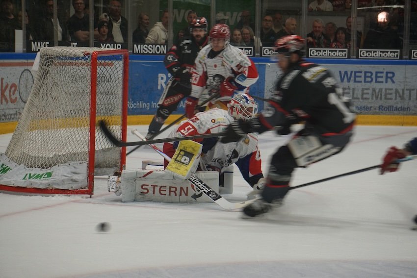 Memmingen erwischte den besseren Start, hatte auch Möglichkeiten. Felix Brassard und Brett Ouderkirk scheiterten in der fünften Minute knapp. Dann tauchten auch die Gäste gefährlich vor dem Indians-Gehäuse auf, Jaro Hafenrichter fand seinen Meister in Justus Roth. In der enorm schnellen Partie hatten Eddy Homjakvos (9.) und auf der anderen Seite Curtis Leinweber (17.) die besten Einschußmöglichkeiten, aber es blieb nach hochklassigen ersten 20 Minuten beim torlosen Remis.