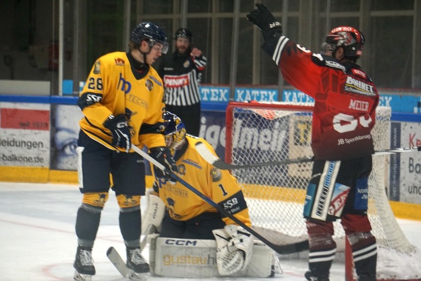Vorsicht ist angesagt, zuletzt taten sich die Indians gegen Stuttgart beim 5:3-Heimsieg schwer. Hier traf Tobi Meier zum zwischenzeitlichen 3:1. Foto: Michael Geiger