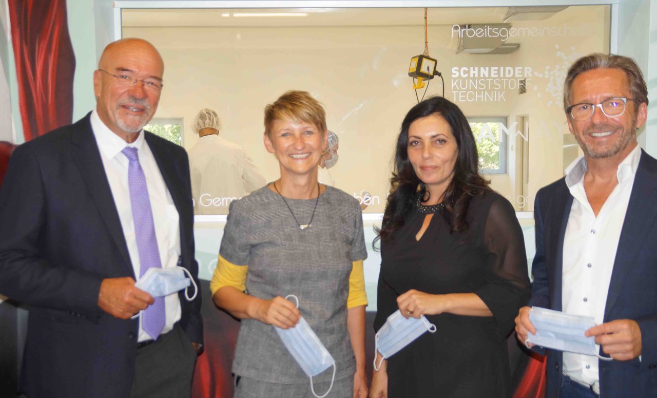 Etwa 1,5 Millionen Masken werden im Monat hergestellt, nun wurde die Unternehmenskooperation der Schneider Kunststofftechnik in Kirchheim und der samway GmbH & Co. KG aus Mindelheim auch offiziell „eingeweiht“.